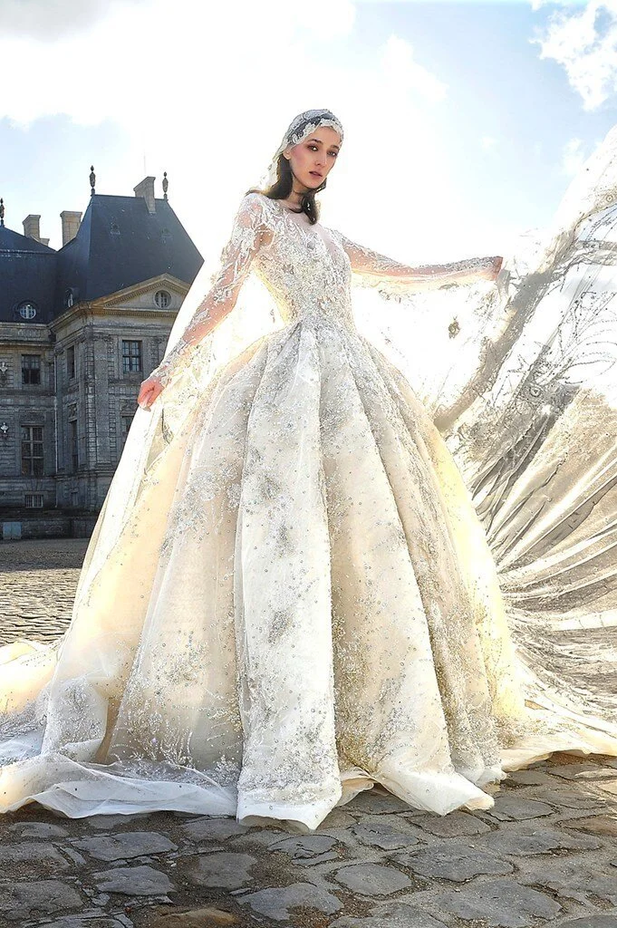 Fly away from Beirut, bruised by recent events, longing for escape, for dreams, for travel. Ziad Nakad wanted this collection to be sexy but slightly frivolous , in order to regain the carefree life of yesterday. The dresses are majestic, transparent, airy and the ostrich feathers mingle with silk and lace. All pieces are entirely hand-embroidered in the designer's atelier, lockdown has given time for time … the wedding dress required 3 months of work, or 3 months of escape ... depending how you look at it.