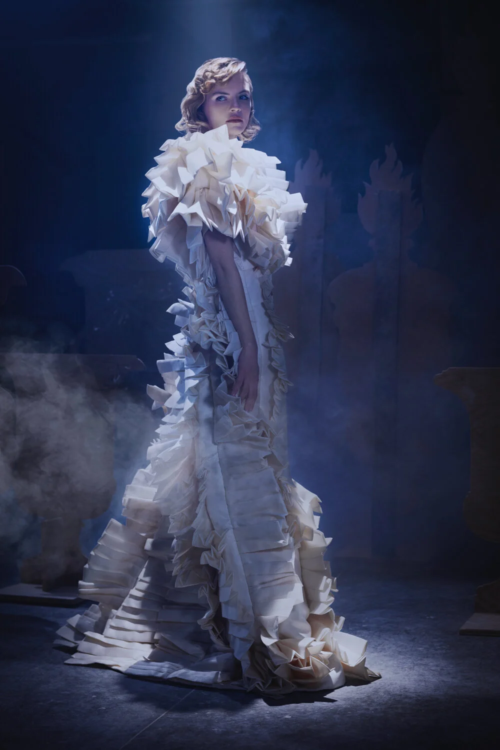 For days and nights, in full lockdown, Farhad Re cuts the triple organza of silk in a virginal whiteness. The contours appear delicately, and Pygmalion / Farhad applies himself to carving a light, sculptural, architectural silhouette. No less than 500 meters of organza were needed to create the 15 dresses of the collection.