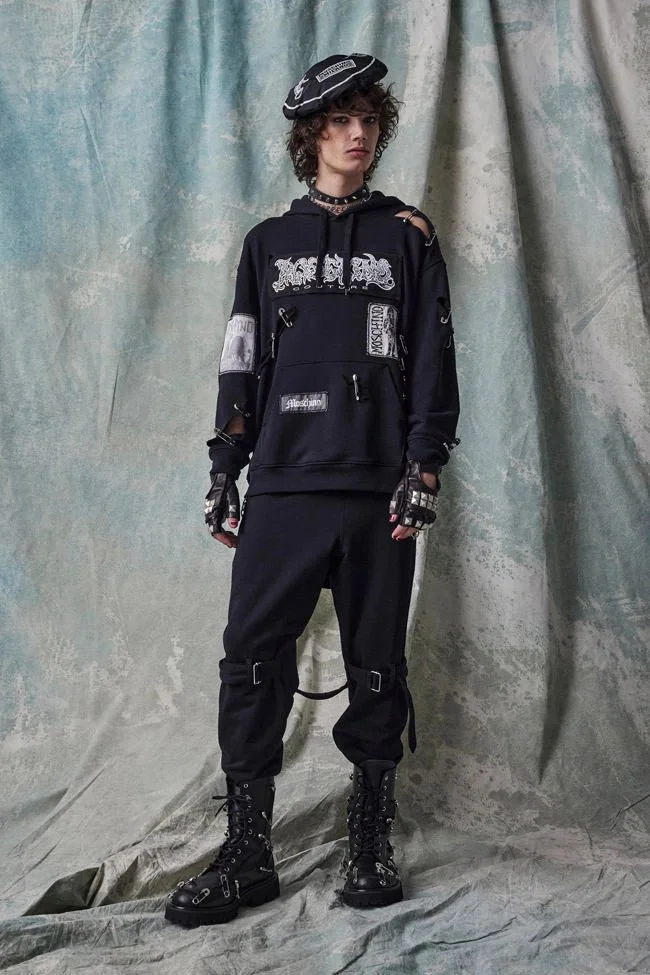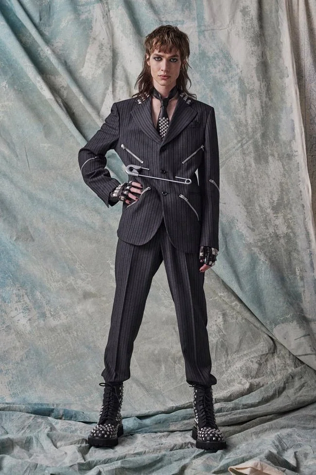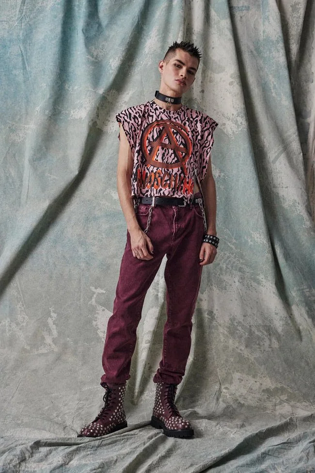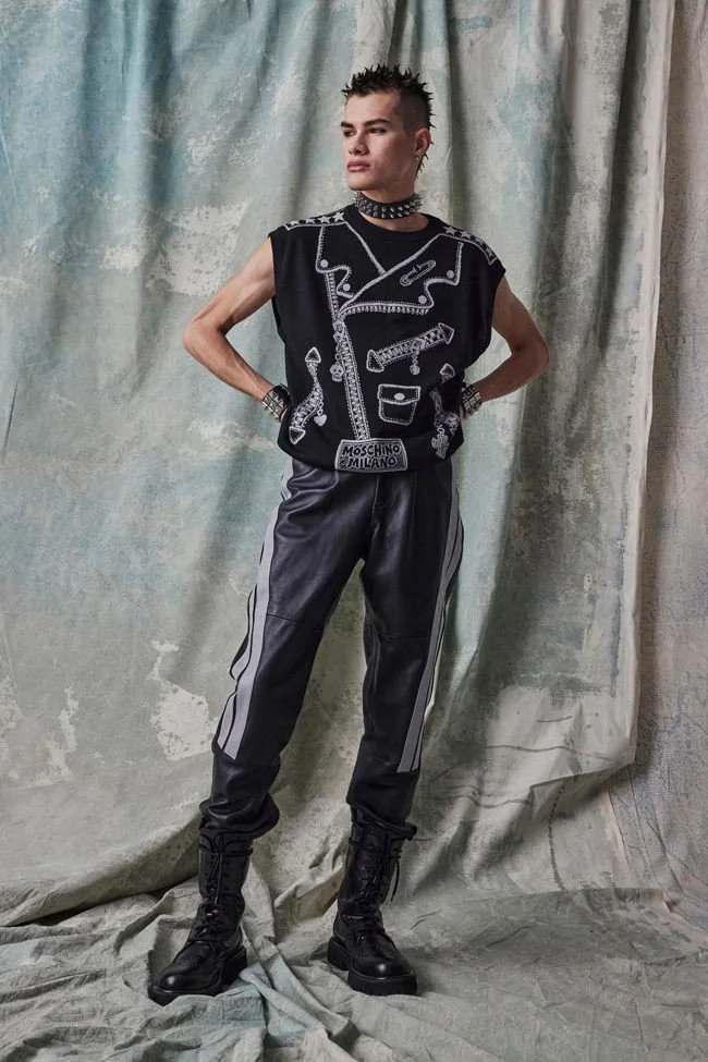 Jeremy Scott turns to the past to make a statement about the current global political climate. For Moschino pre-fall 2023 he reinterprets and modernizes Punk DNA from the inside out. Deconstructed tailoring and magnified elements, alongside Scott’s ironical satire. make for a fashion collection that is as visually captivating as it is meaningful.