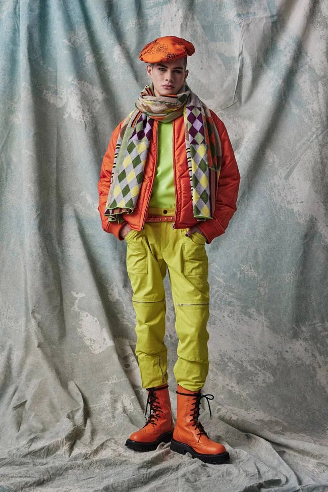 “Destroy to rebuild. We have to fight for everything we believe in,” read a graffiti motif on the back of a rusty brown herringbone coat. “Those sentiments still have validity because we’re fighting about things globally, from our elections here to the strife in Ukraine to the atrocities happening in Iran,” Scott said on a video call from Los Angeles. “There are so many different things that require attention and energy and, sometimes, for you to fight for what’s right.”