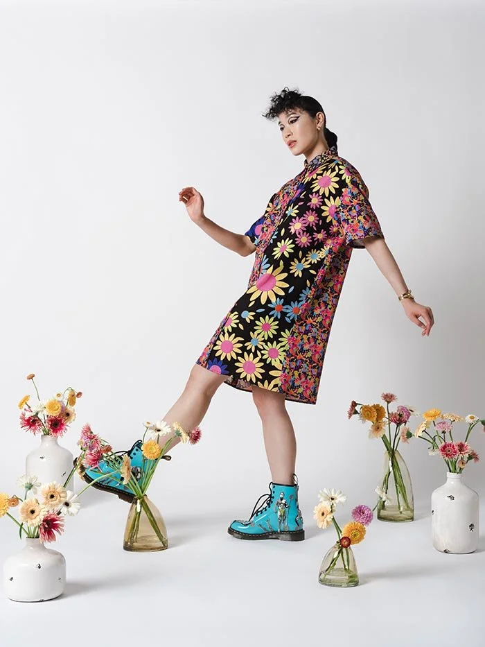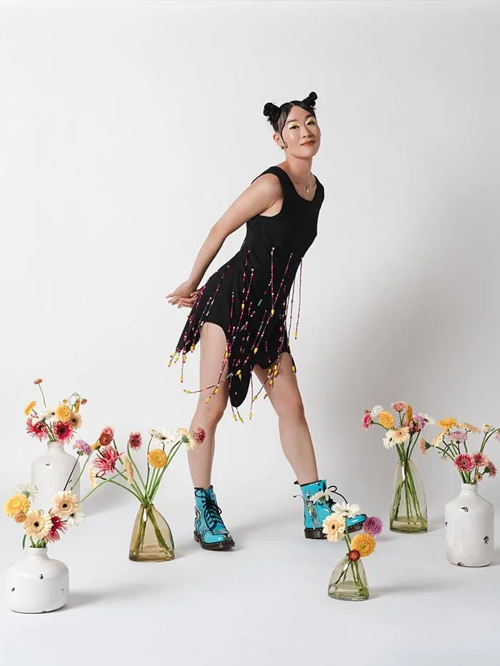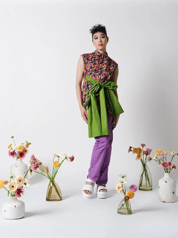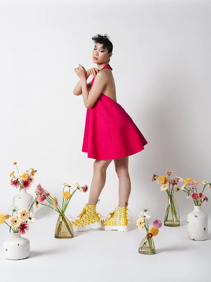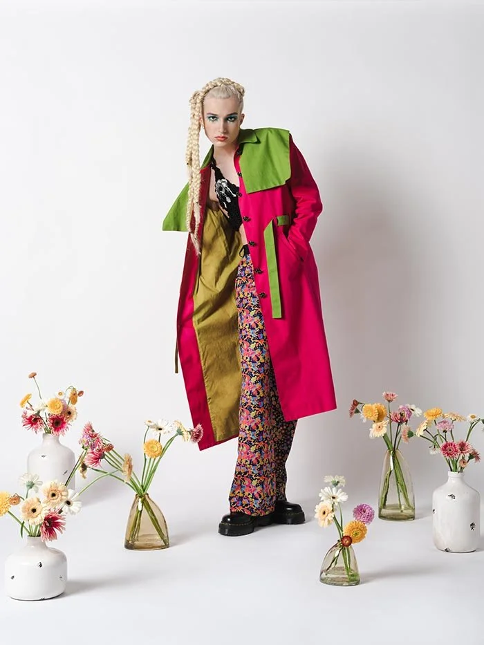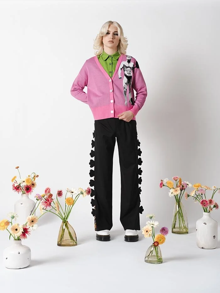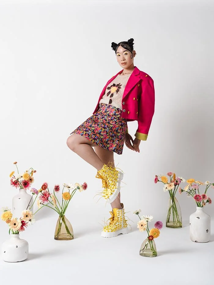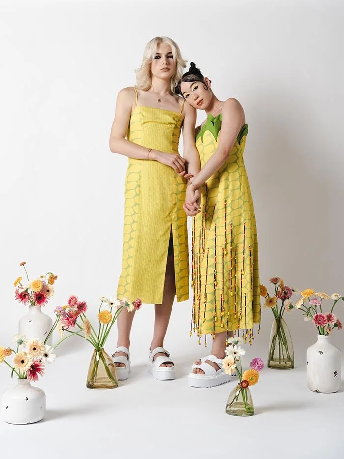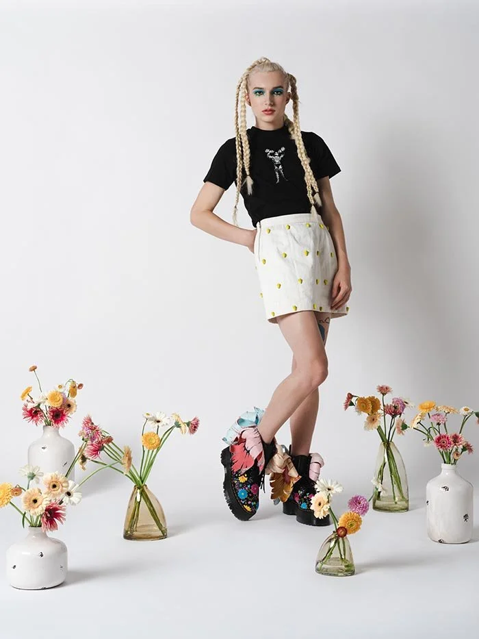 Melke's SS23 collection 'How To Act Like a Man' is inspired by the 1966 Czech film DAISES which follows the chaotic antics of two women named Marie who seek to embody and break free from the absurdity of gender stereotypes. Fed up with being seen as dainty dolls, they decide that since the world is in chaos, they too will be chaotic.