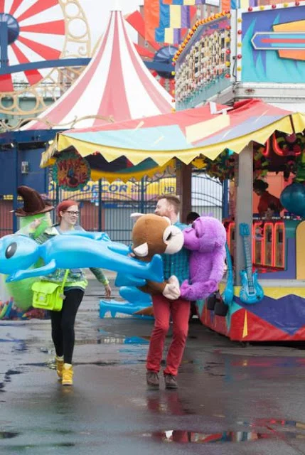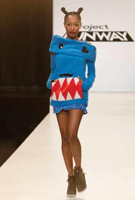 fans and contestants have in common? WE love to hate team challenges. Last week's episode introduced the first team challenge of the season and paired it up with [yet another] unconventional challenge - a double fashion whammy. Most of them "made it work" while, inevitably, others struggled, a lot, both figuratively and literally. Yoplait was the sponsor and other than paying the big advertising bucks for the tv spot, they really didn't have a place. The designers started the day at Coney Island with Yoplait. "Regular" folk tasted a variety of frozen yogurt flavors which they described using only one word. Later, those words were to serve as the inspiration for the outfit(s). Mood was skipped once again. We love "Swatch." The material for the challenge came from the prizes (stuffed animals, inflatable, hats, etc.) won by the designers playing the carnival games. That was a pretty cool and creative twist. Good job guys. For some.