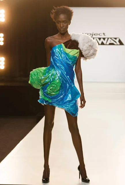 Finally! A good dress. Made from stuffed animals, it was fun, quirky, stylish and innovative. A judges favorite. I was surprised and disappointed it didn't win. Alexandria and Dom did an excellent job and worked very well together, as evidenced by their look.