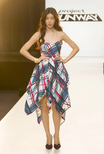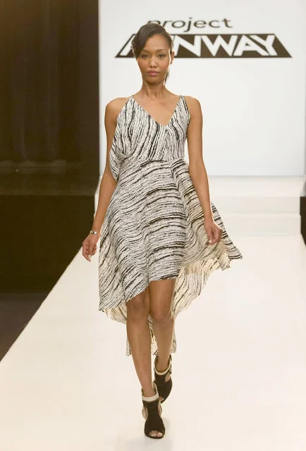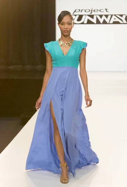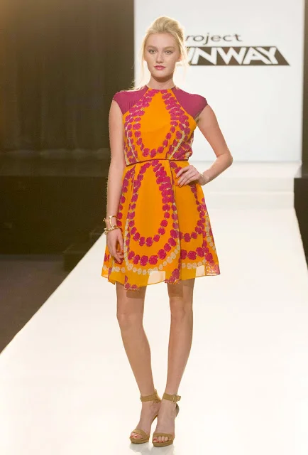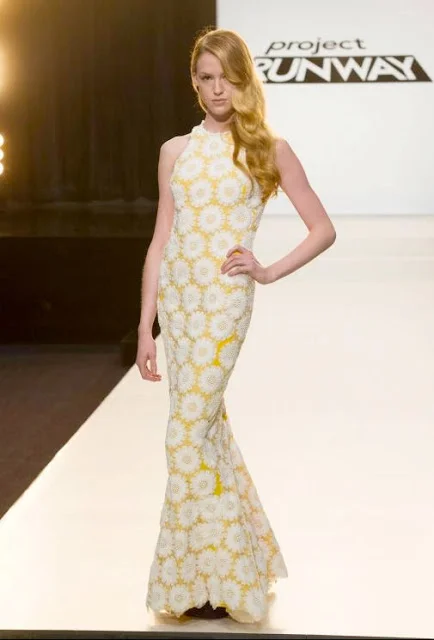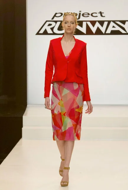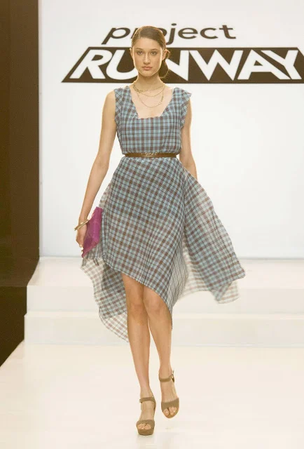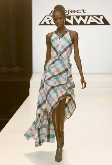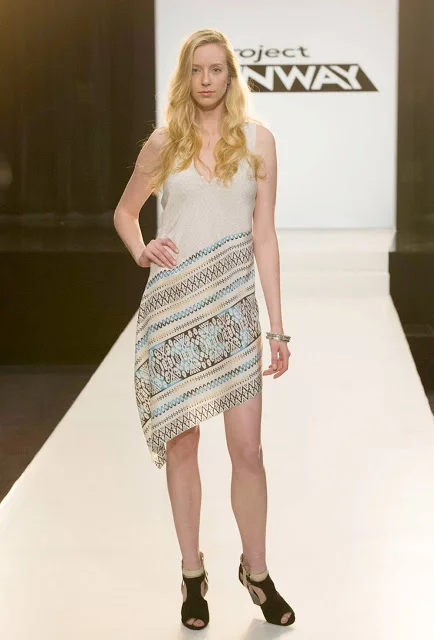 Kate didn't win the challenge but I think she was close. The judges responded very well to the pattern and style of the dress. Belk's VP said he could see it in stores and Nina Garcia pointed out that the dress had hanger appeal.