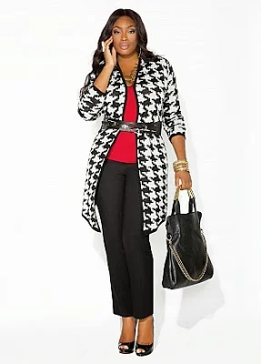 Current fashion trends, straight from New York Fashion Week, such as black & white, large bold pattern and leather detailing can all be found at Ashley Stewart.
