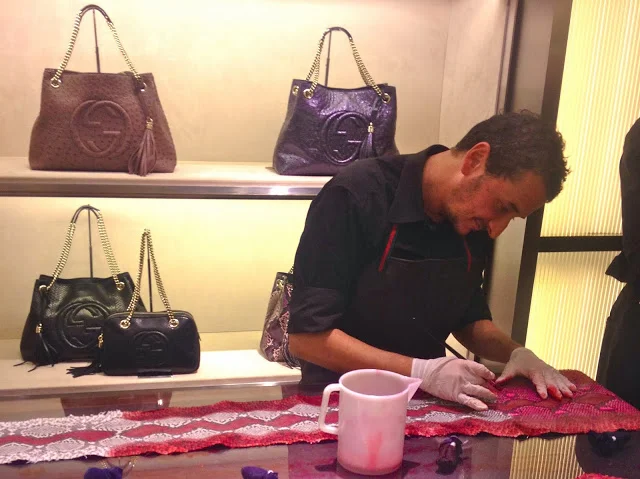 /Old world craftsmanship and tradition in Atlanta, grazie a GUCCI. Florentine artisans are at the Phipps Plaza Gucci location for a three-day workshop. To watch this process is something out-of-this world! You will see first-hand how these skilled and talented artisans hand-dye python, emboss on leather goods, sew & stitch bags and watch how they stain bamboo, grown specifically for the popular 'bamboo bags.'