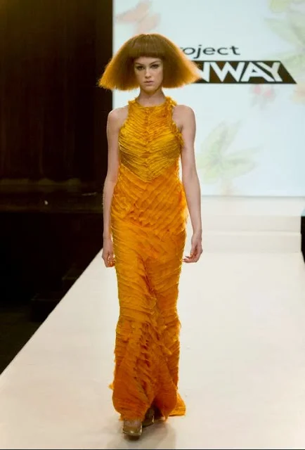 /Bradon is off to Fashion Week. (Which of course was a month ago, LOL) He was the clear winner of the avant-garde challenge. His dress (pictured above) made the judges drool. And rightfully so. It's one of the best avant-garde looks to come out of