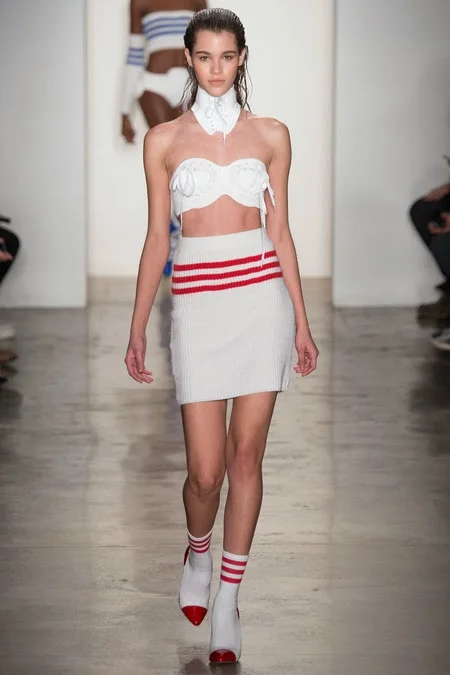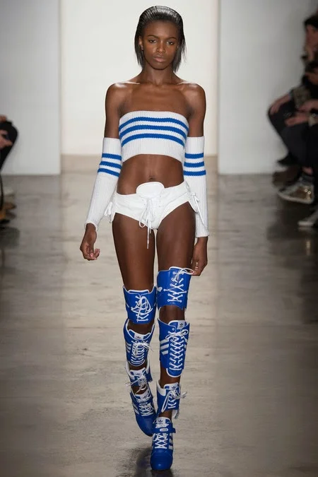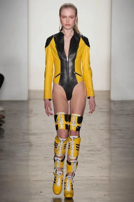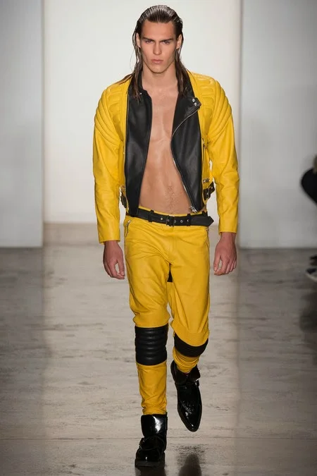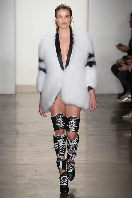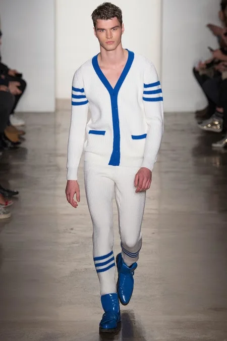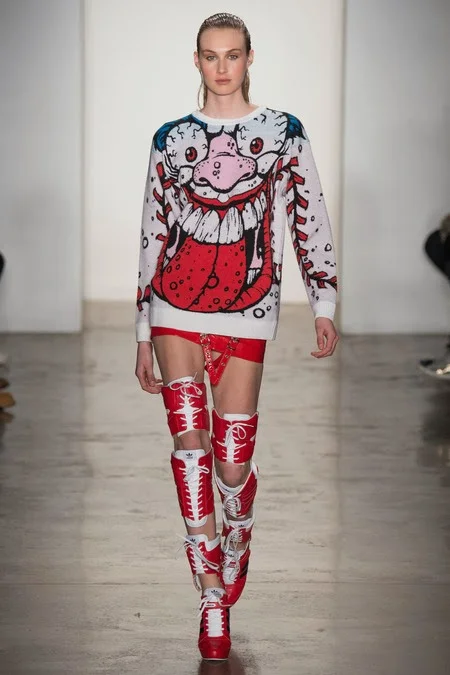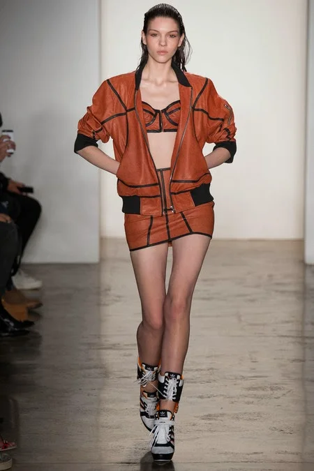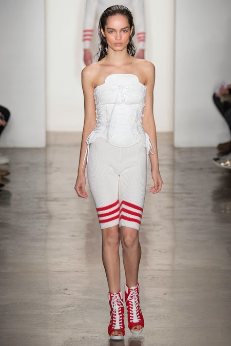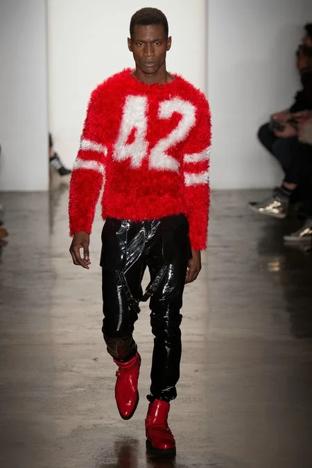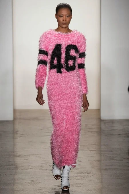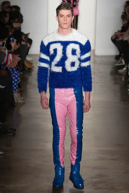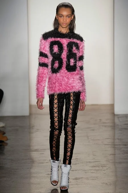 /The fashion world would be boring as hell without Jeremy Scott in it. Jeremy is one of fashion's bad boys. He's always a little crazy and a lot wild. For Fall 2014, his interpretation of sports uniforms and locker room garb is quite clever. I absolutely love it and I hate sports!