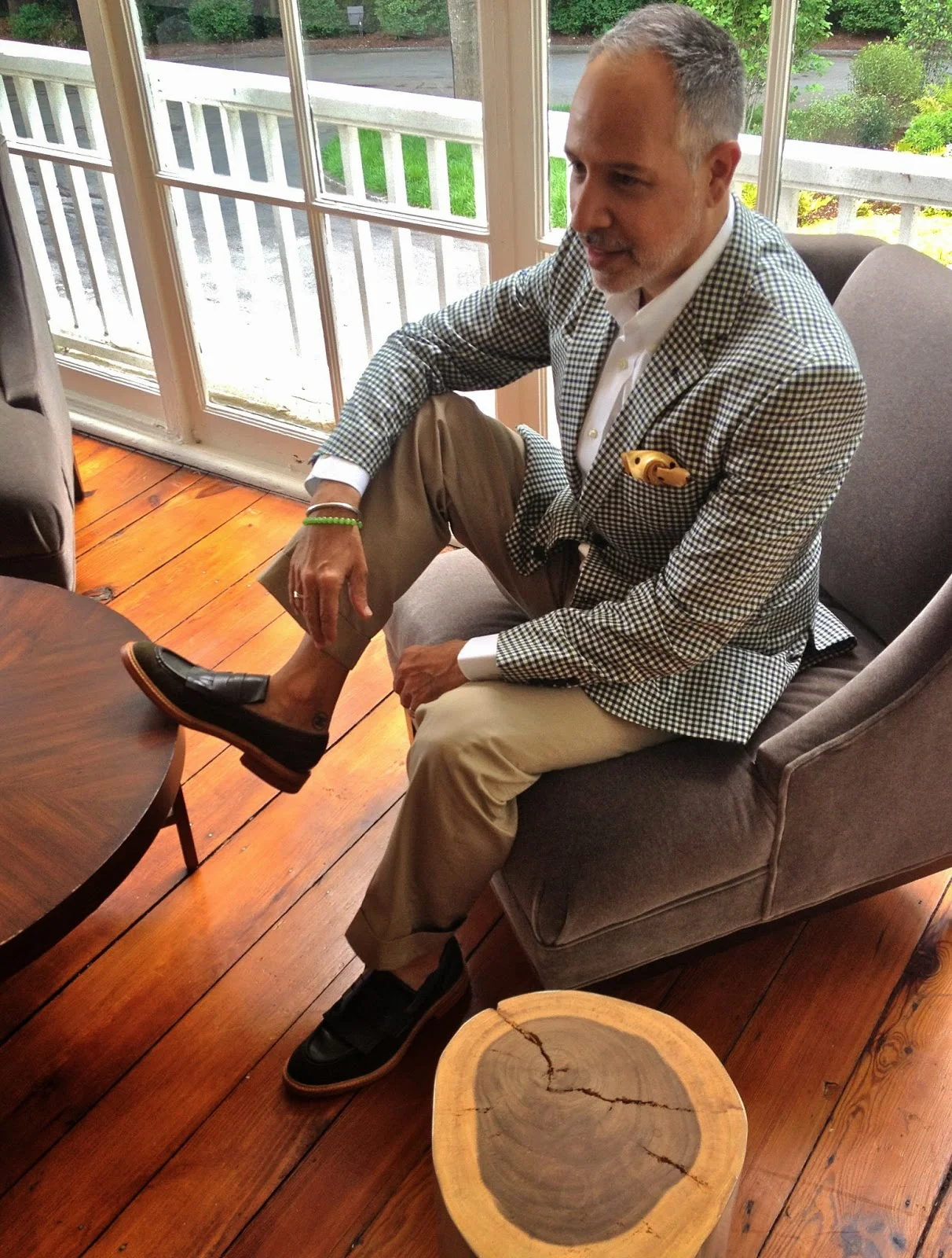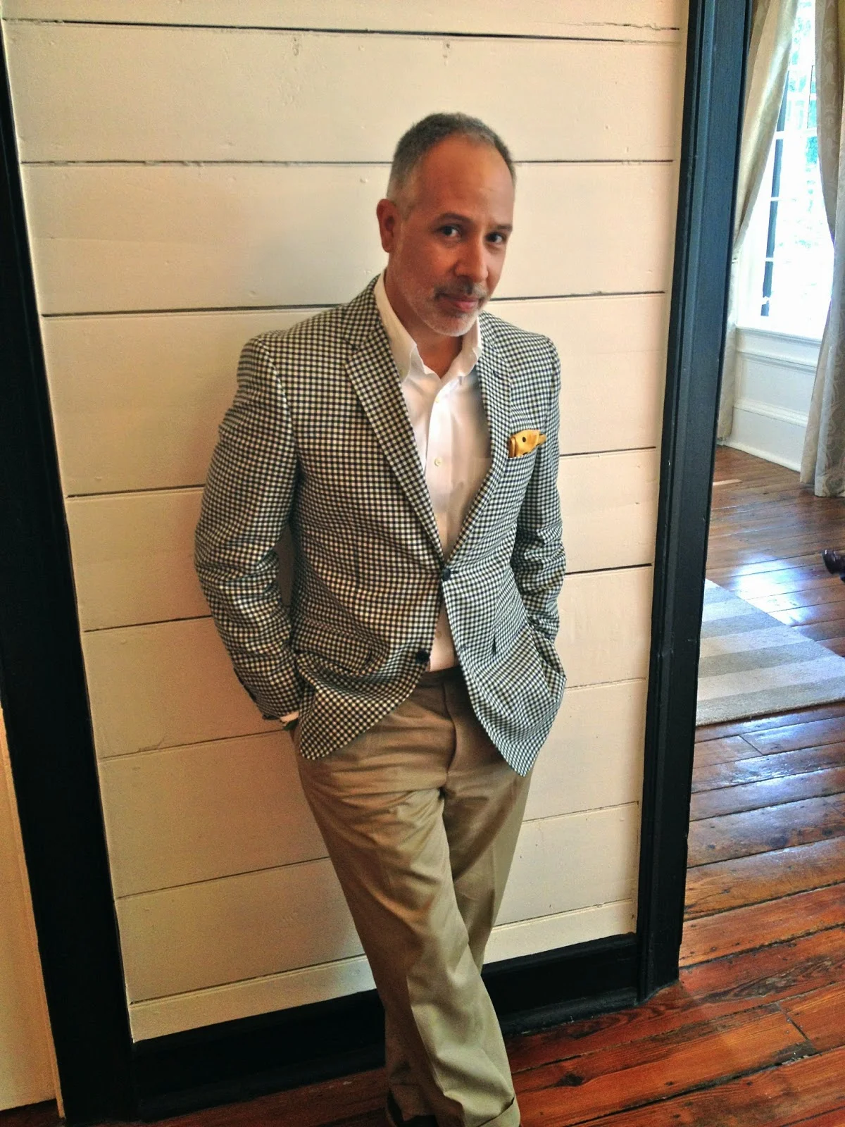 Next time you want to dress up your khakis, consider where they came from. Start with that! Designer labels make a difference here. These are Thom Brown for Brooks Brothers. Follow the advice I provided and you'll look sharp and dapper.