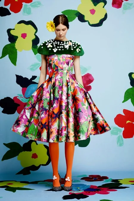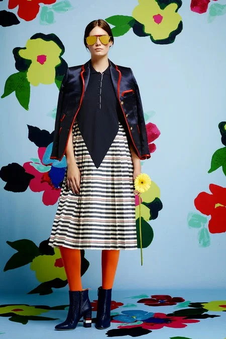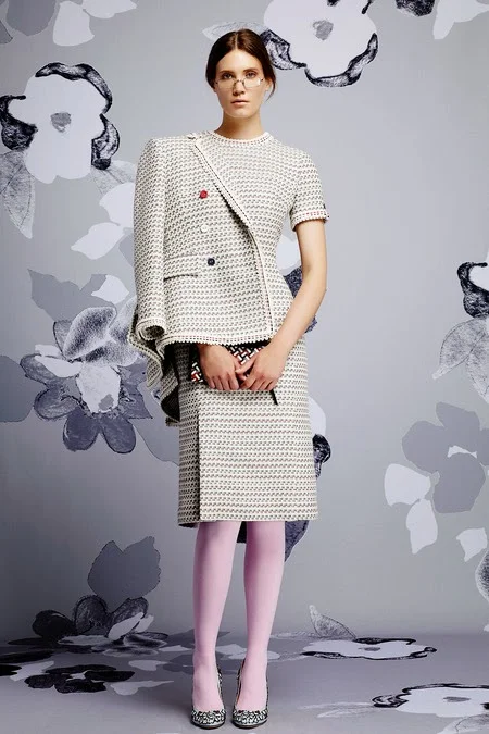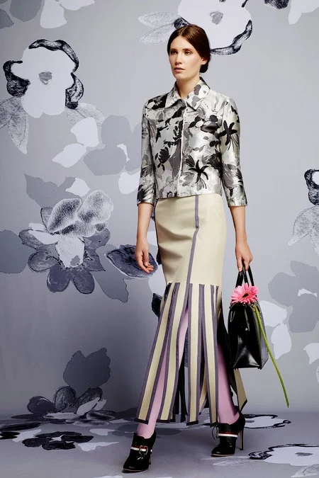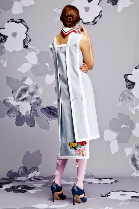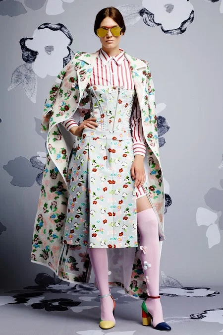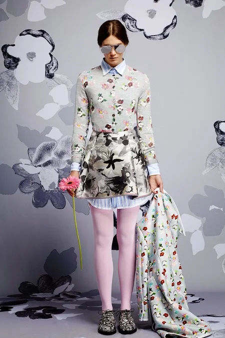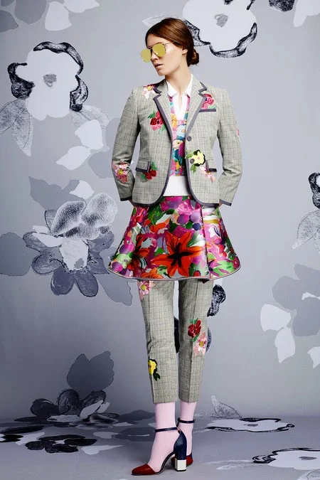 /It was all about florals, ugly florals for Thom Browne Resort 2015. But if you read fashionado regularly then you know three things about Thom Browne: 1- We are huge TB fans; 2- TB can do no wrong; 3- There is always a rhyme & reason behind all things TB. He is the master when it comes to layering pieces, combining prints and pattern and my personal fave, exaggeration - everything in excess; details on the details. Now, Thom Browne stepped away from the garden from time to time with elegant tweeds and silk jacquards. And then the florals returned in high-waisted pants and skirts, jackets and light sweaters. View Collection: