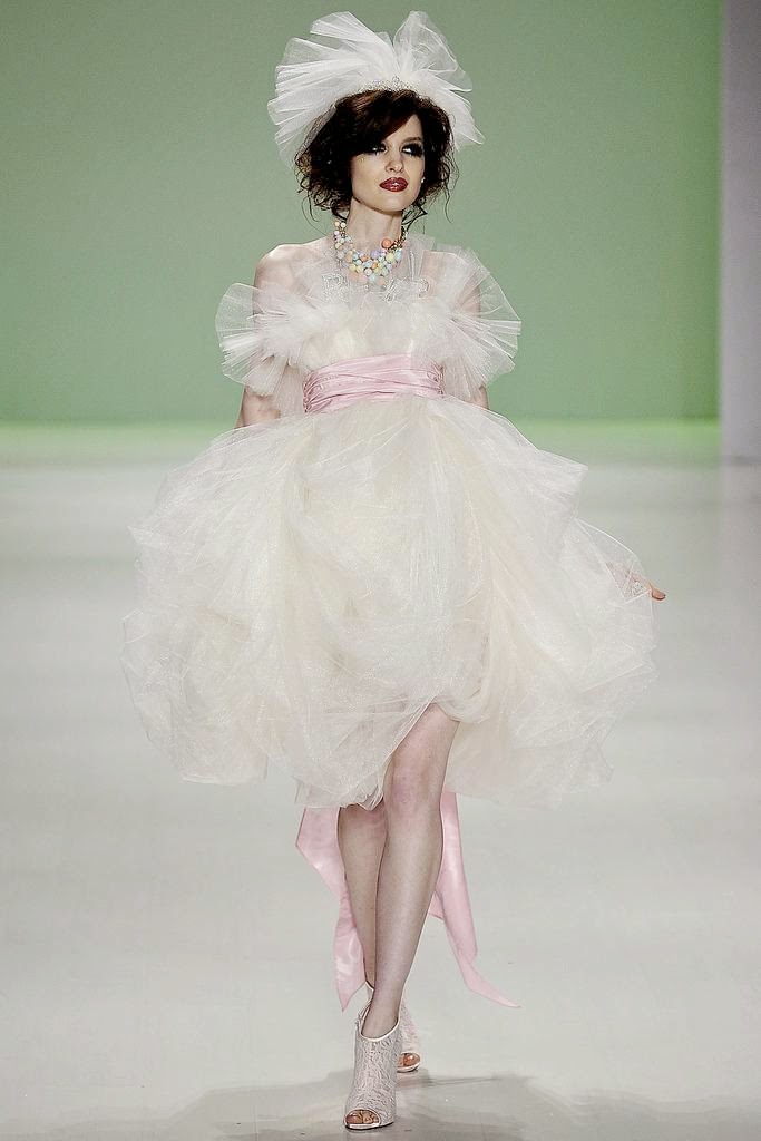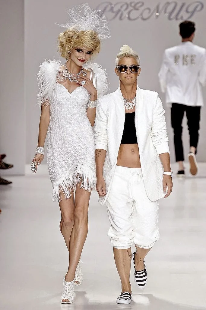 /Love was in the air at Betsey Johnson for Spring 2015. Drag Queens and 'Real Housewives' sashayed down the runway in what had to be the zaniest show of the season. Every look was super-glam and very camp for the marriage equality themed collection. And you can't miss the "Prenup" rhinestone necklaces that many of the models wore ... they were fabulous!