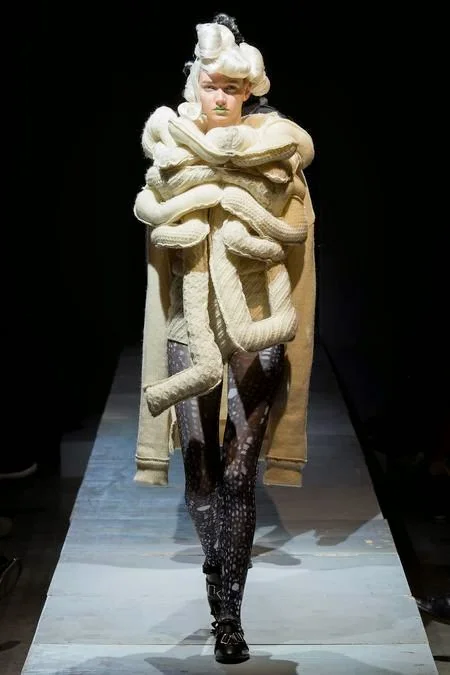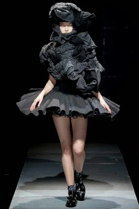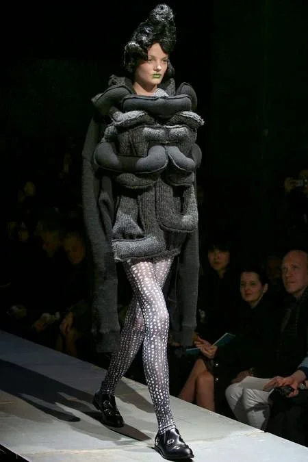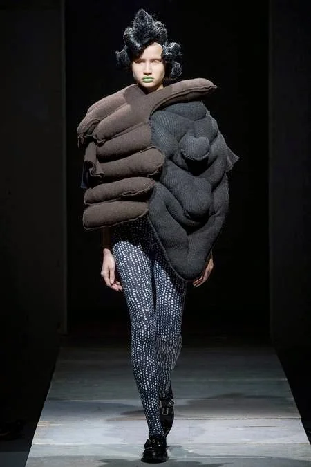 /"The theme of the collection this time is MONSTER. It's not about the typical Monster you find in sci-fi and video games. The expression of the Monsters I have made has a much deeper meaning. The craziness of humanity, the fear we all have, the feeling of going beyond common sense, the absence of ordinariness, expressed by something extremely big, by something that could be ugly or beautiful. In other words, I wanted to question the established standards of beauty." Rei Kawakubo, Comme des Garçons.