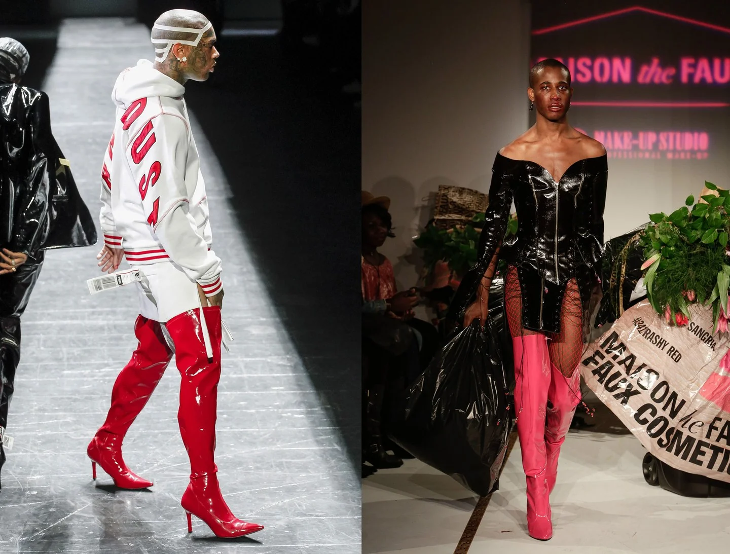 It says something about a man's confidence when he steps out in public in a pair of heels. The wearing of heels has a long history that dates back to the 18th century. A portrait of King Louis XIV of France paints a picture of him in luxurious textiles with a pair of red-heeled shoes. David Bowie was a later advocate of this trend along with Rick James and Prince. These dandy styles are back on a rise and can be seen worn by Harry Styles, Kayne West and Justin Bieber.