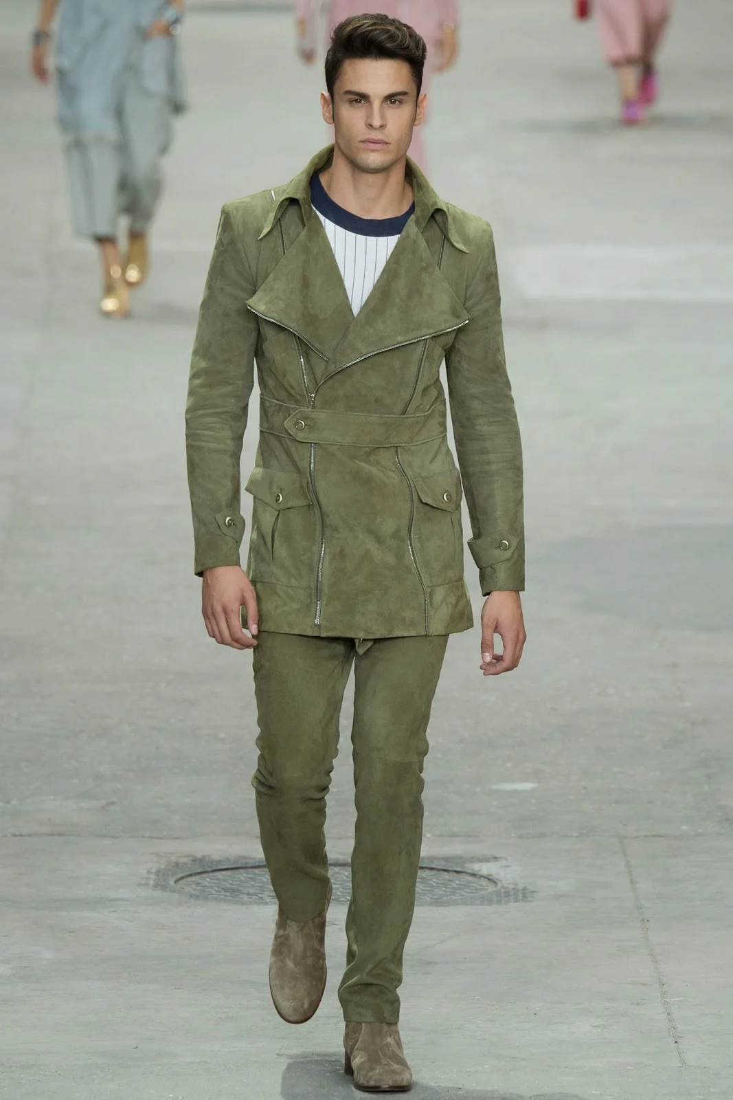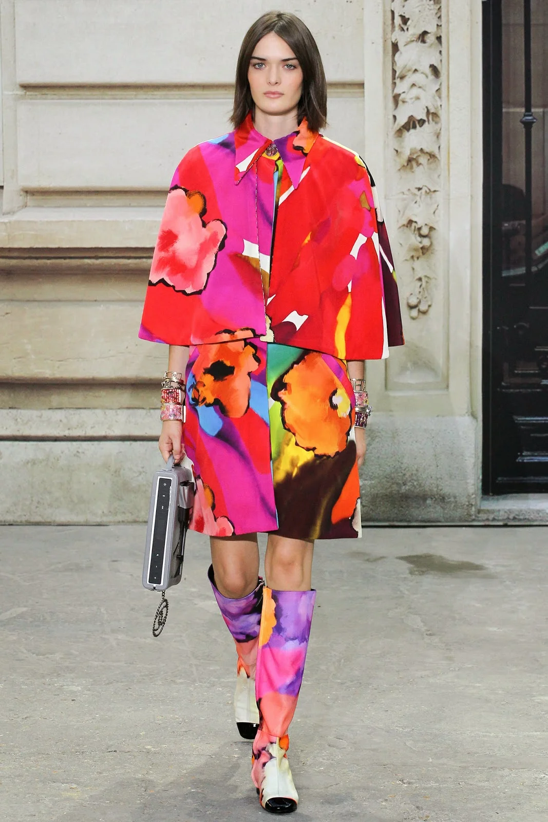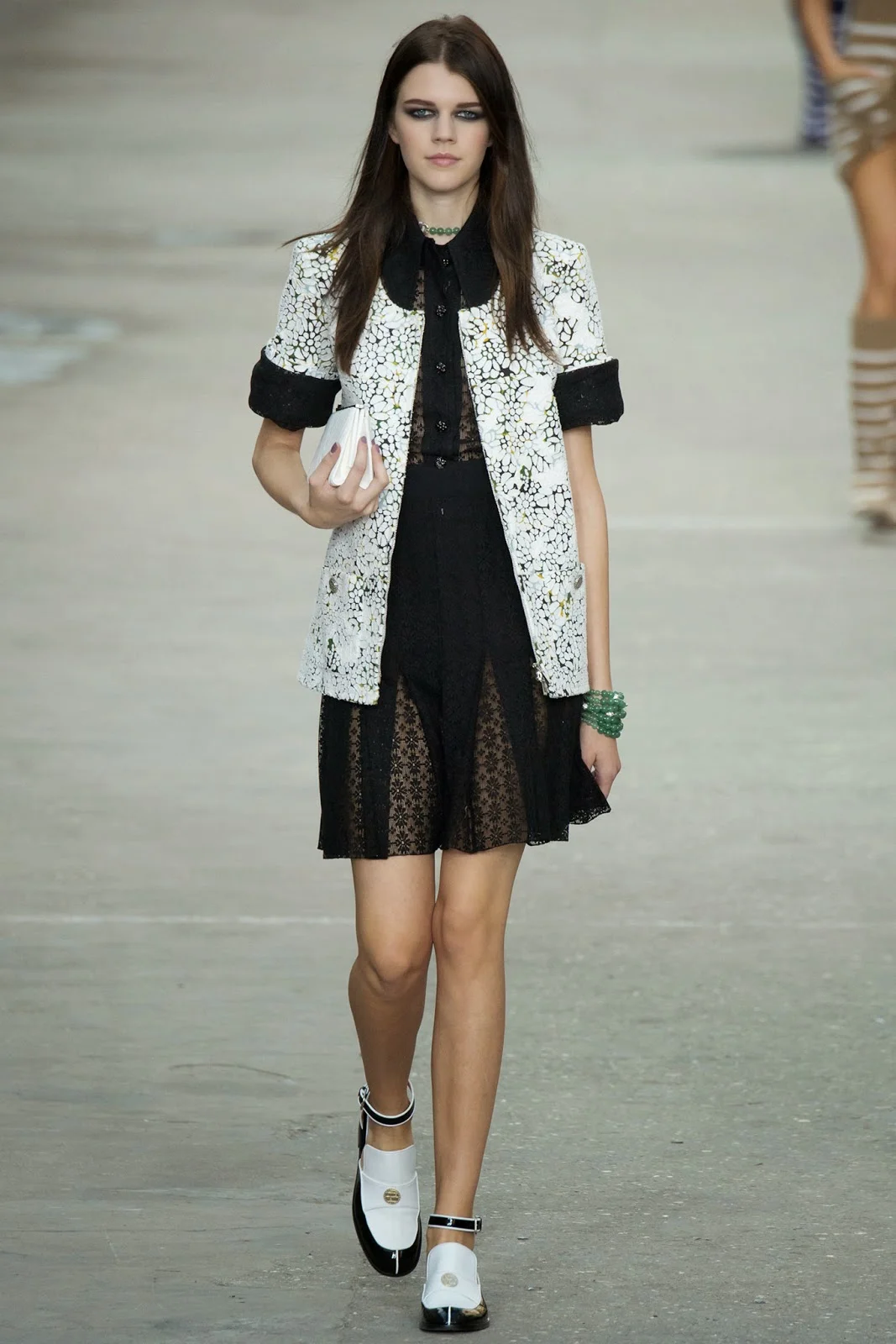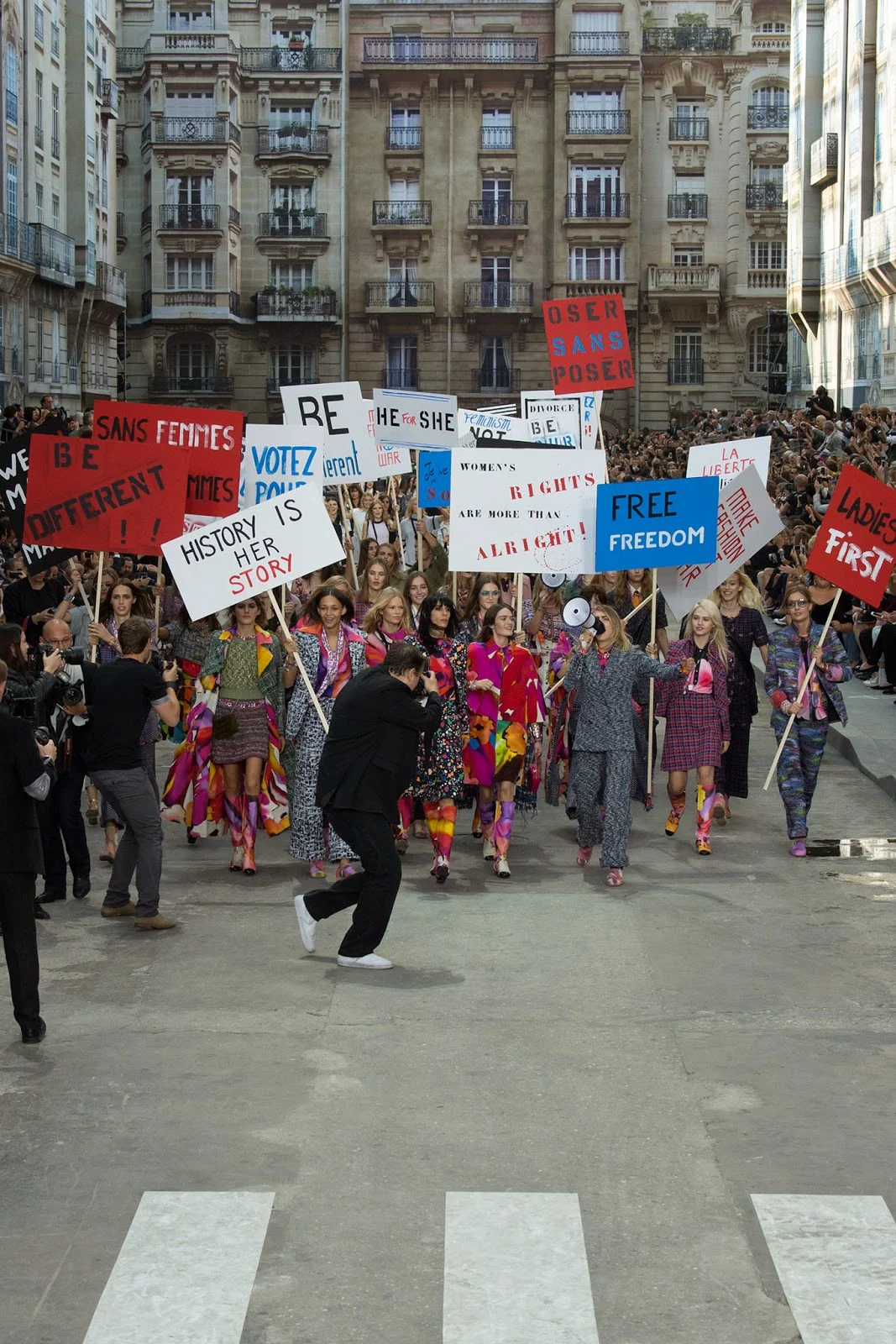 Uncle Karl took to the streets to protest women's lib for Spring 2015. It was a very stylish spectacle. (Last season Chanel went grocery shopping, remember that?!) I am all for showmanship, I love it, but what about the clothes? I was underwhelmed by the first grouping of tweeds. Dare I say they felt (a little) frumpy? But hey, if you're going to be frumpy, why not in Chanel! The black and white pieces towards the end of the collection were my favorites. And there were some pretty fab caplets and coats of varying lengths.