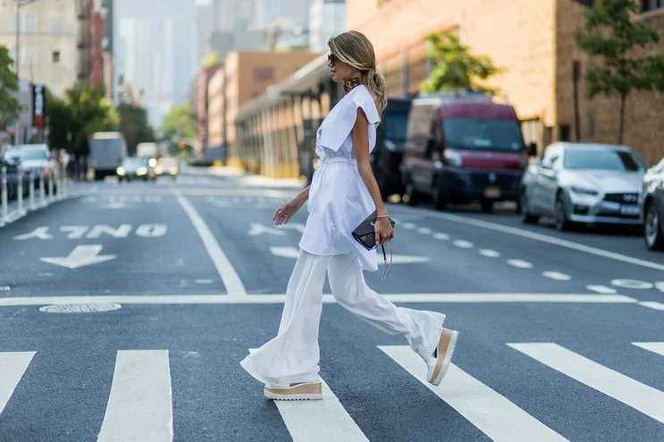 Wide-leg pants have been an ongoing trend for a few seasons now. This inspired look from the seventies is still alive and is bigger and better than ever. This silhouette is so versatile and comfy. Wether you prefer high-rise, mid-rise or even low-rise there is a pair for everyone. Opt for a modern feminine look by pairing wide-leg pants with a structured top and platform sandals.