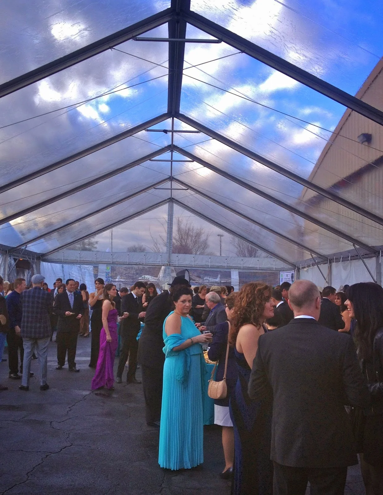 The evening began with a VIP cocktail reception at 6:15. I took this photo soon after and you can already see the large crowd gathering. At about 6:50, Doug Barron, GOCA's director, welcomed guests by opening the huge hangar doors and revealing the abundance of silent auction items. Some items were super fabulous, other... eh. But hey, it's for charity.