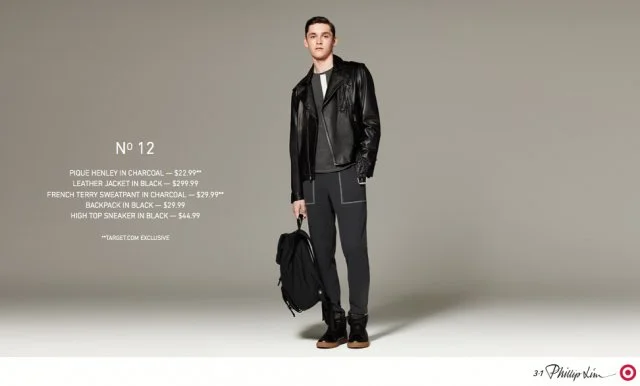 looks for women and men, including bags, satchels and shoes. From leather jackets to trenchcoats, the day, noon and night looks range in prices starting at $19.99 - $299.99. In June of 2013 Phillip Lim received the CFDA award for Accessory Designer of the Year. I predict that this collection will fly off Target shelves.
