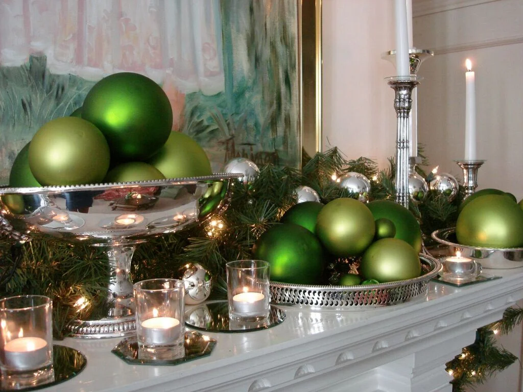 For the fastest, most fabulous holiday decor, simply fill your favorite vessels with ornaments!  Even bargain drugstore ornaments look special and sparkly when displayed together.  For extra impact, use several like material containers in one area featuring ornaments in a single color theme.  Multiple clear glass hurricanes and vases shining with all white ornaments or several shiny bowls brimming with various shades and sizes of green Christmas balls look elegant and modern...in minutes!