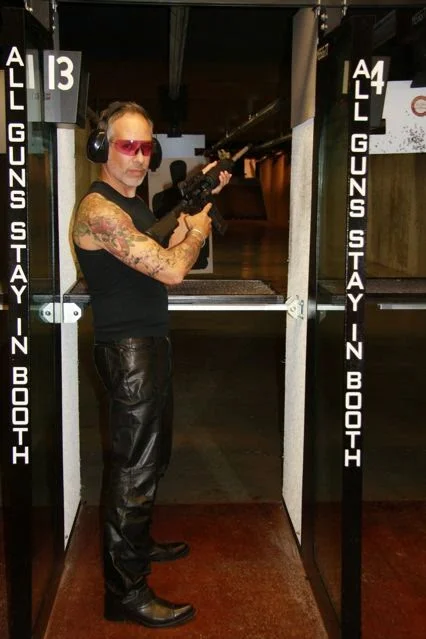 Accompanying me was photographer and stylist, Richie Arpino. I was shooting guns and Richie was shooting me (with his camera!)
