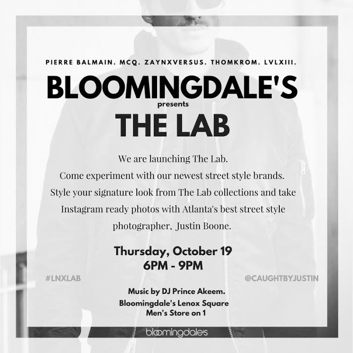/Atlanta’s bloggers, influencers and Instagram style stars are invited to Bloomingdale’s Lenox Square on Thursday, October 19th to launch The Lab, a special collection of designer streetwear, with a street style photoshoot featuring Atlanta’s best street style photographer, Justin Boone. Boone is known for his candid captures of locals and tourists around Atlanta with an eye for the best in luxury streetwear looks, chronicled on his Instagram page @caughtbyjustin.