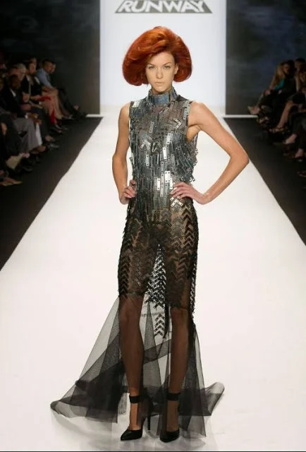 Dom Streater wins season 12 of Project Runway [my pick!] in what had to be one of the strongest runway finale shows ever and undoubtedly one of the toughest for the judges. The boys, Bradon and Justin presented good collections but the judges felt they weren't "ready" just yet. Alexandria also had an amazing collection and could have won Project Runway just as well. But at the end, and much to my happiness, Dom took the top prize! Let's have a look at her collection: