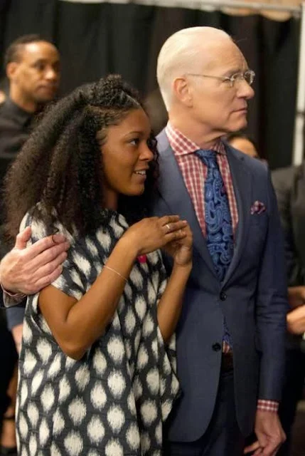 When Justin, in tears, returned to backstage to announce he was out, everyone gathered around him for a big group hug. Everyone was crying. I was crying. In the history of Project Runway, I have never seen anything like this before. Tim Gunn, also crying, saved the day. Well, actually, he saved Justin from elimination! Tim used his vote and vetoed the judge's decision.