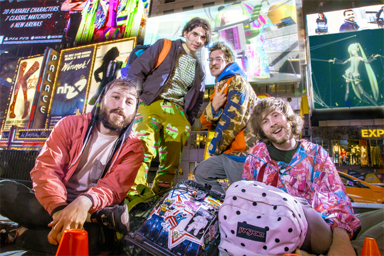 Anamanaguchi is a digital pop group featuring the warped productions and hyperactive melodies of songwriters Peter Berkman,Ary Warnaar, and Luke Silas, playing under custom-fabricated lights made by bassist James DeVito (who most recently designed LED outfits for Taylor Swift’s 1989 World Tour). They are a team of playful DIY internet anarchists whose colorful iconoclasm comes with a heavy sense of humor and a seriousness about having fun. When they’re not busy touring, Berkman and Warnaaralongside Web Master Neil Cline have been heading hypermedia titan NHX on internet music releases such as: ⒶⓃⒶⓇⒸⒽⓎ,Capsule Silence XXIV, Maxo’s Chordslayer EP, and many more.