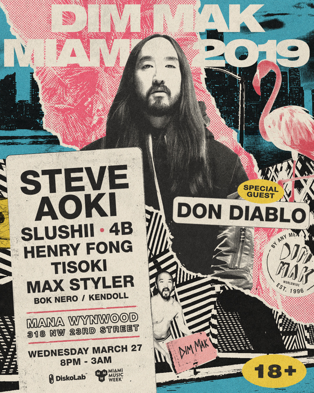 Dim Mak returns to Miami Music Week for a late-night affair at Mana Wynwood. Headlined by Steve Aoki, the festivities include a newly announced lineup featuring performances by Slushii4BHenry FongTisokiMax Styler, Bok Nero, Kendoll and special guest Don Diablo. The 18+ event kicks off at 8PM and ends Thursday morning at 3AM.
